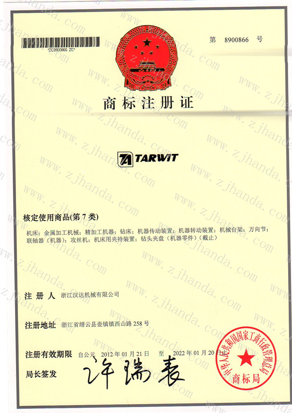 當(dāng)前位置:首頁>公司新聞>商標(biāo)局頒發(fā)TARWIT達人商標(biāo)注冊證