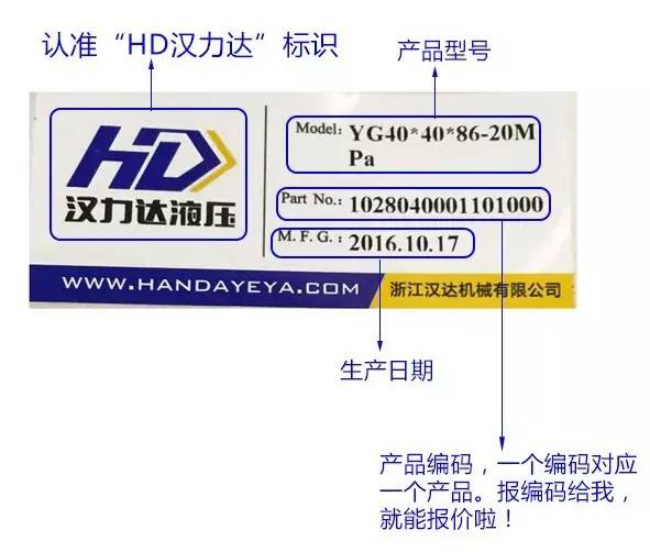 漢達(dá)液壓產(chǎn)品線的商標(biāo)漢力達(dá)以及標(biāo)簽