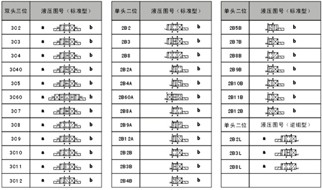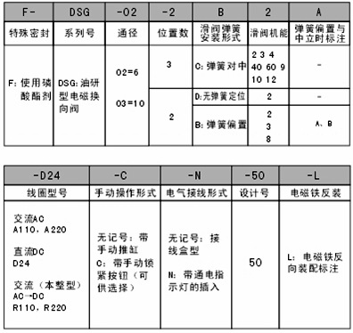 以下為電磁換向閥型號(hào)命名方法,請(qǐng)按以下型號(hào)訂購(gòu)。