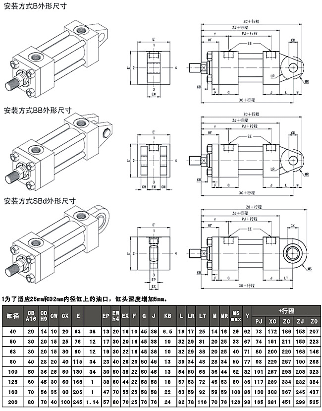 YGD標(biāo)準(zhǔn)液壓缸B\BB\SBd四拉桿液壓缸具體參數(shù)