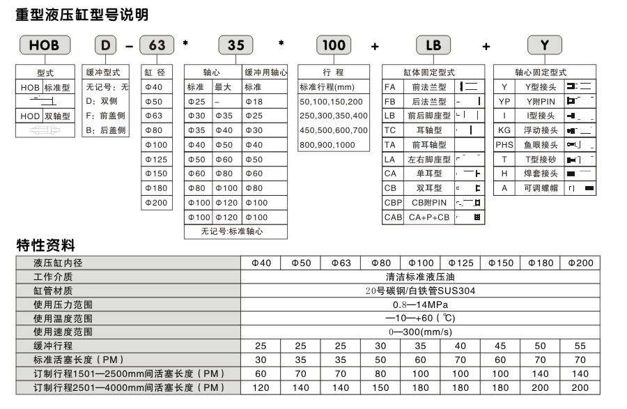 4)按照以上三條,可按照以下HOB油缸型號(hào)說明,明確您需要的型號(hào);