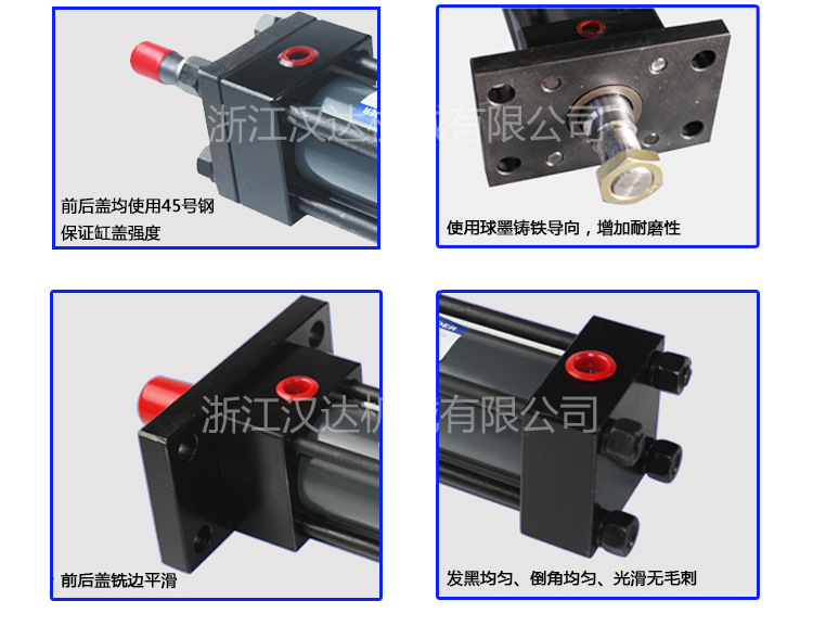 2.可調(diào)緩沖性:油缸終端還加裝可調(diào)緩沖,是油缸換向時(shí)平穩(wěn)無沖擊;